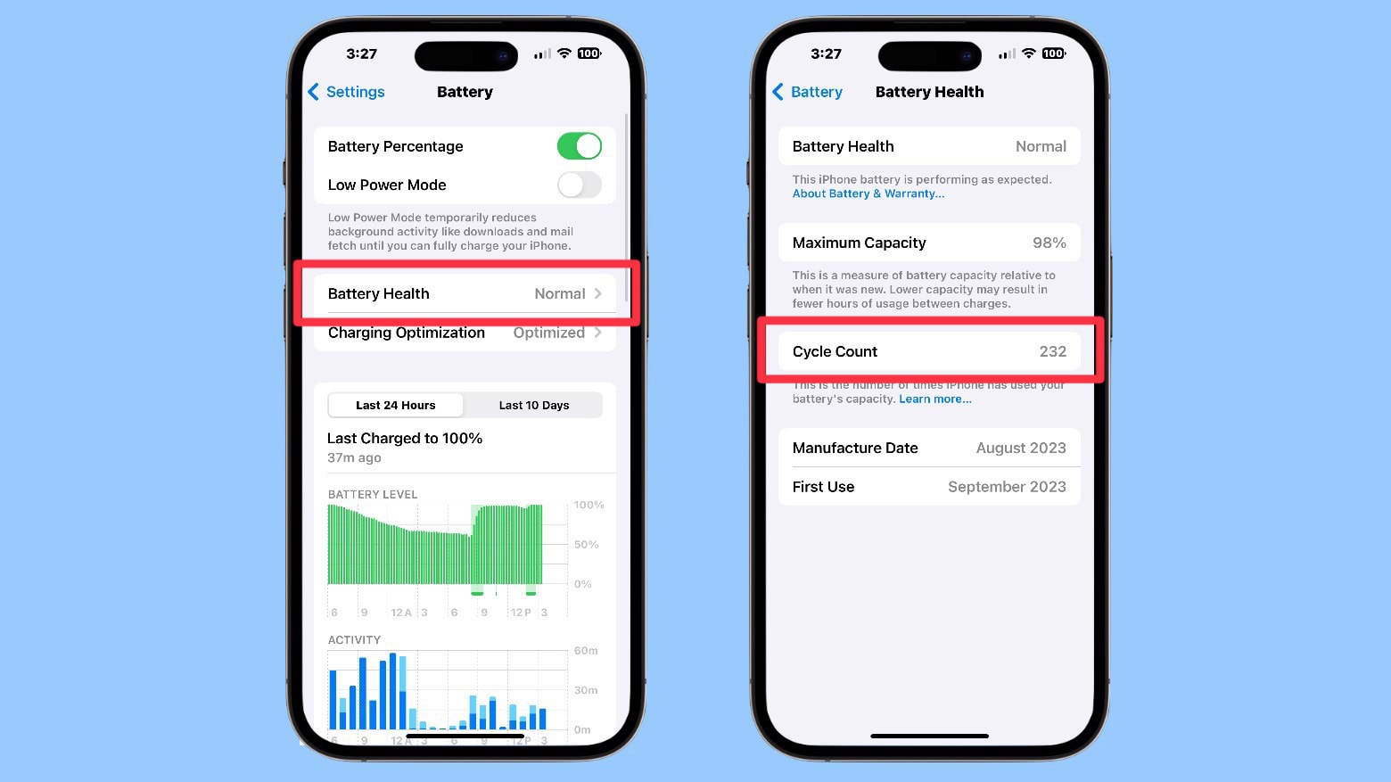 بطاريات الليثيوم أيون في هواتف آيفون مصمّمة لتقديم أداء جيد لحوالي 500 دورة شحن كاملة، أي ما يعادل تقريبًا من سنة ونصف إلى سنتين من الاستخدام الطبيعي. بعدها تبدأ البطارية بفقدان قدرتها تدريجيًا، وتظهر علامات واضحة تُنبّهك بضرورة التغيير.