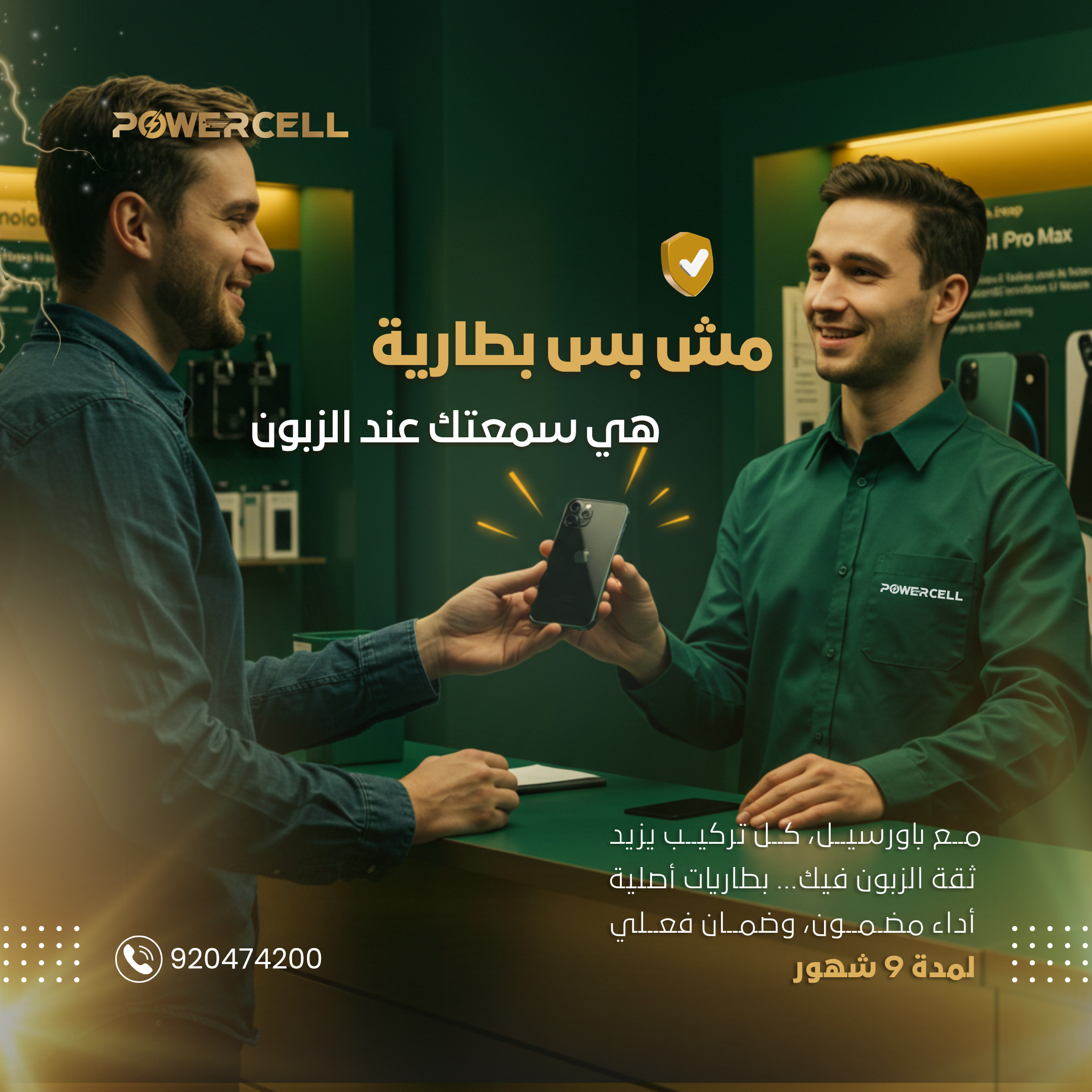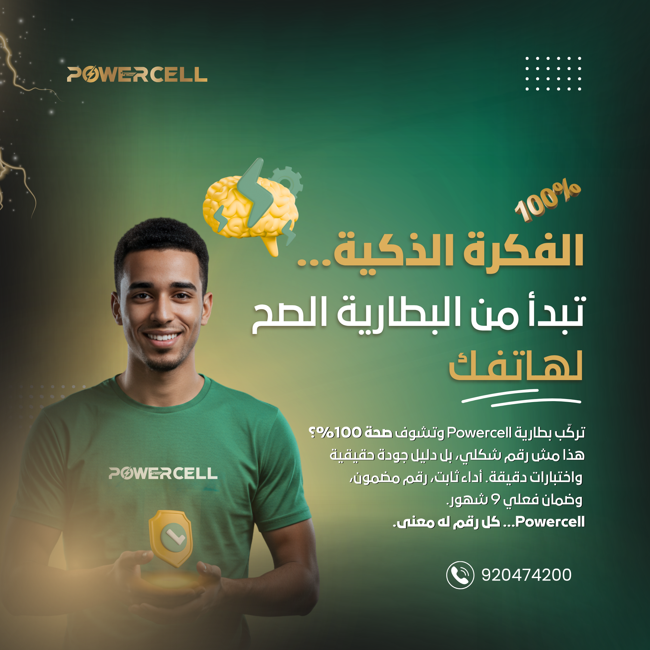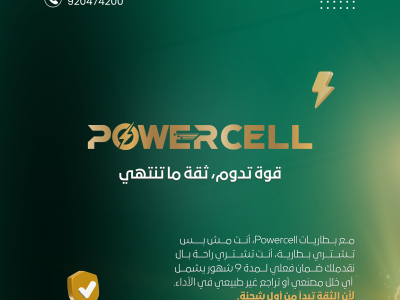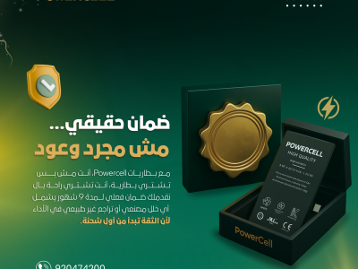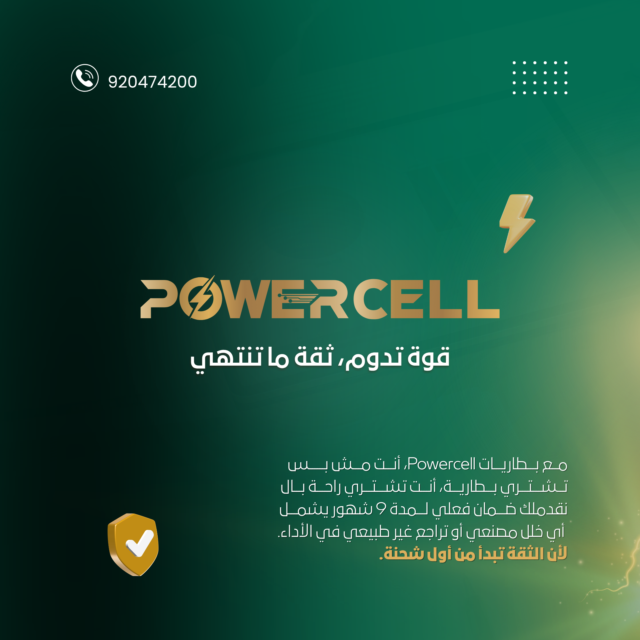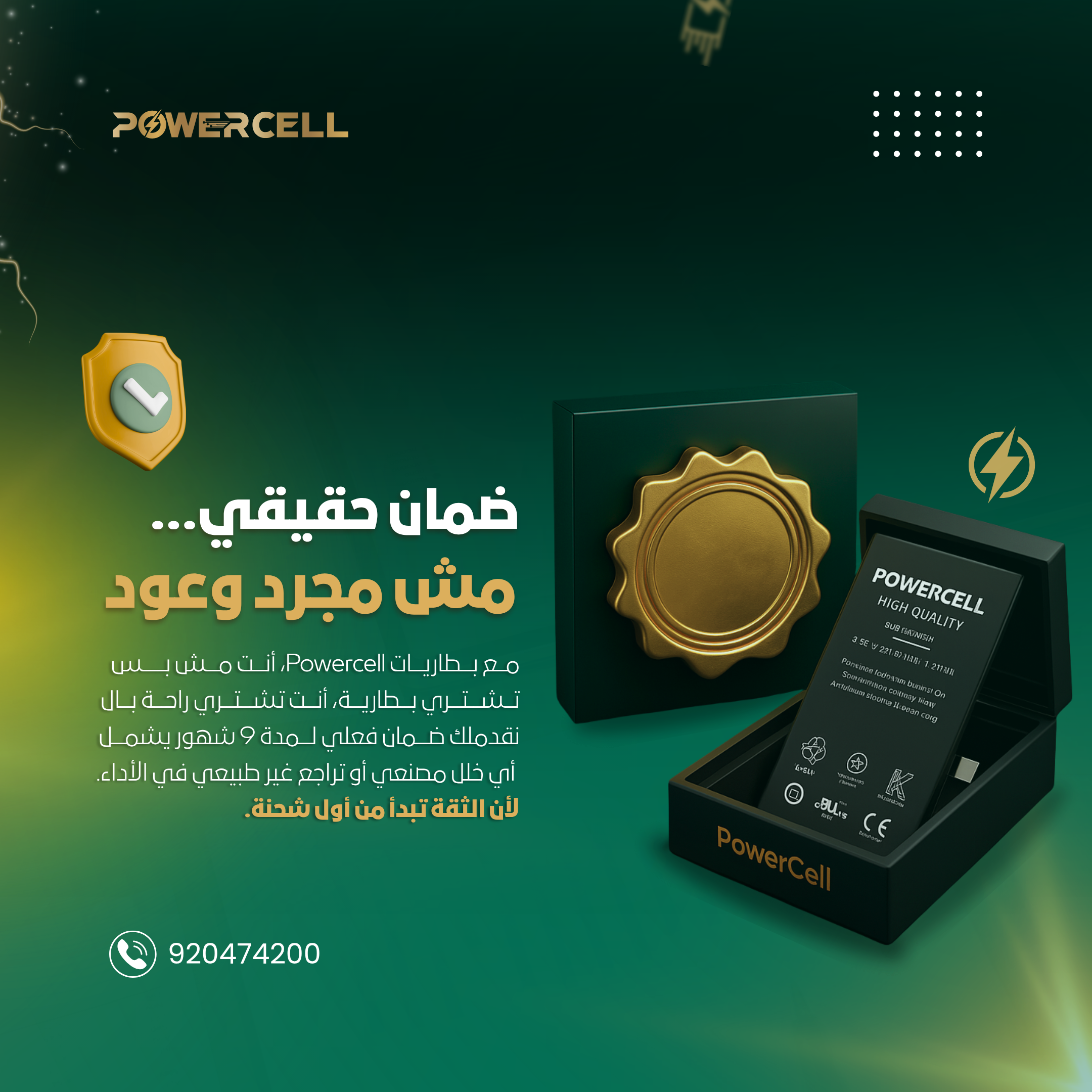 بطاريات Powercell مصممة خصيصًا لتمنحك تجربة آمنة وثابتة، وتأتي بضمان فعلي لمدة 9 شهور، واختبارات جودة دقيقة.